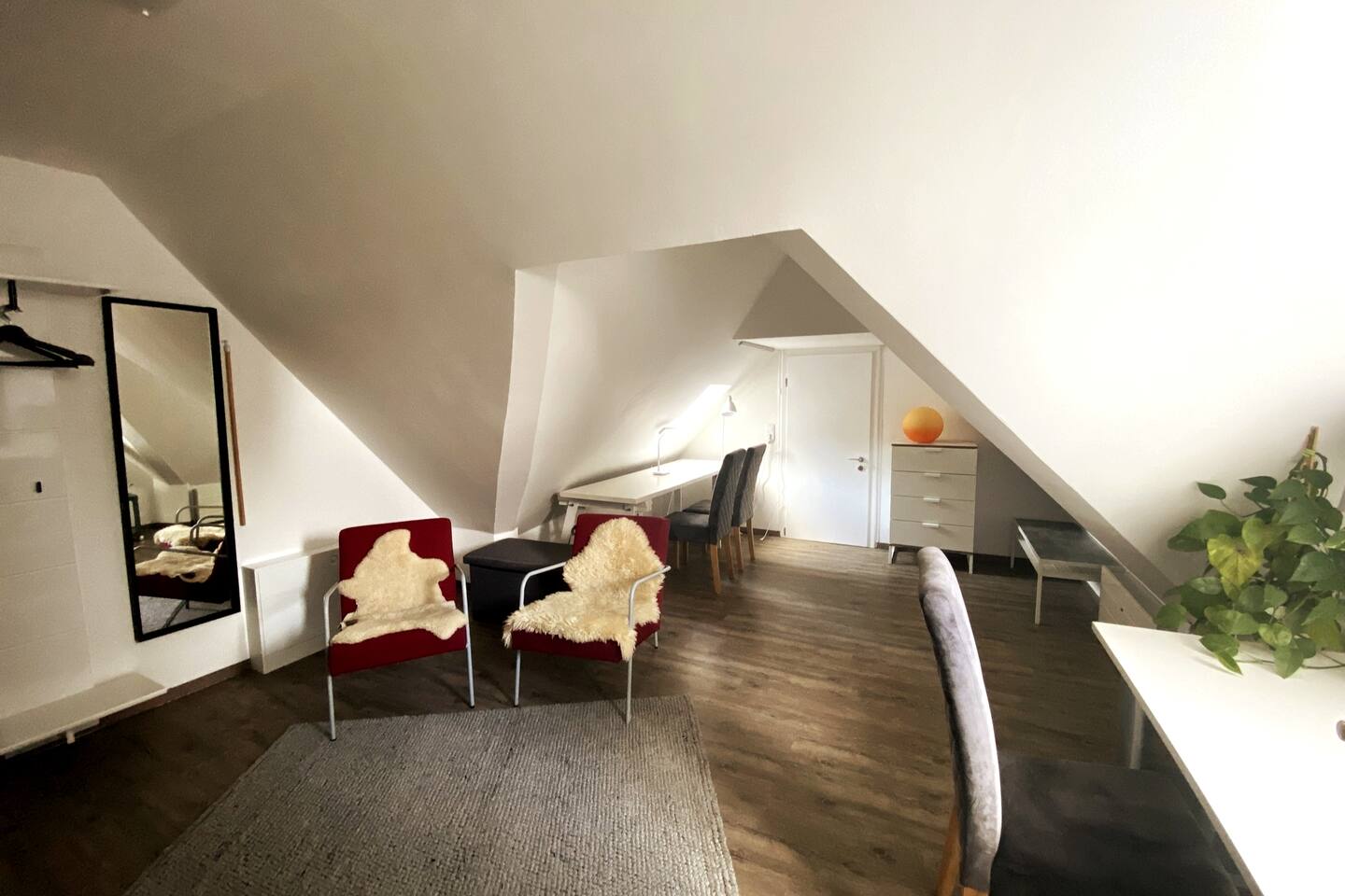 Das Haus ist komplett eingerichtet, bietet mehrere Arbeitsbereiche und einen großen Garten zur Mitbenutzung.